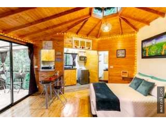 Cabaña - Loft en Madera: • Ambiente tipo loft de concepto abierto • 1 baño • Cocina equipada • Jacuzzi privado • Zona de ropas • Espacio de parqueo • Se arrienda completamente amoblada • Valor de arriendo: $2.000.000 mensuales.